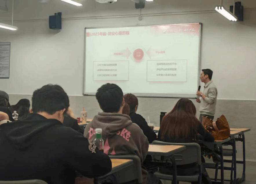 为深化校企协同育人机制,引导学生树立科学的职业发展观念,提升其职场适应力与长期竞争力,近日,工商管理学院特邀龙建达股份总经理卢俊楠走进课堂,为学子们带来了一场题为《职业规划及成长——从适应到个人发展》的专题授课。本次课程一改单向讲授模式,通过“辩论赛”“你画我猜”“情景模拟”“畅想未来”等高参与度、强互动性的教学设计,打造了踊跃思考、积极表达的沉浸式课堂,氛围热烈活跃。