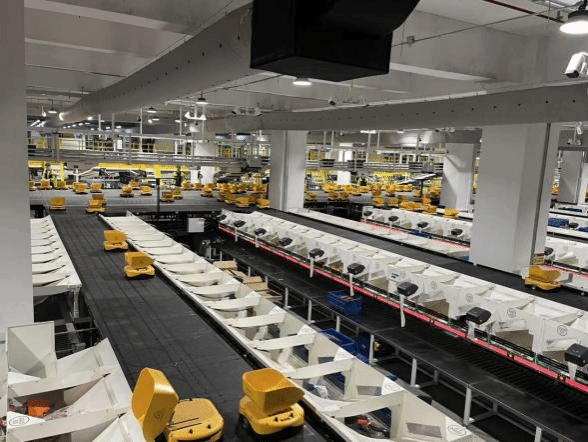 在大参林顺德仓现任代理经理陈志鹏和大参林顺德仓项目负责人林启航的引导下,调研团队沿着“收货-存储-分拣-出库”的完整物流动线,将理论痛点与现场实践逐一验证。大参林顺德仓构建了由连续式提升机、螺旋提升机与高速摆臂机组成的立体垂直物流通道,实现了货物在收货、存储、分拣各楼层间的自动、快速、精准流转,打破了传统楼库的动线隔阂。在易碎品和异形件处理区,以“高精度视觉识别+柔性机器人”的组合确保了操作的轻柔与准确,复核正确率达99.99%以上;在标准件高速分拣区,交叉带分拣系统能以每小时超6500箱的速率运行,并智能采用“一单多件”的播撒模式,大幅提升出库效率。小黄人机器人根据供包人员下达系统的复核完成指令,在分拣魔毯上灵活避让、快速行进,把中药订单商品准确送达指定格口,形成了高效、柔性的“货到人”分拣矩阵。