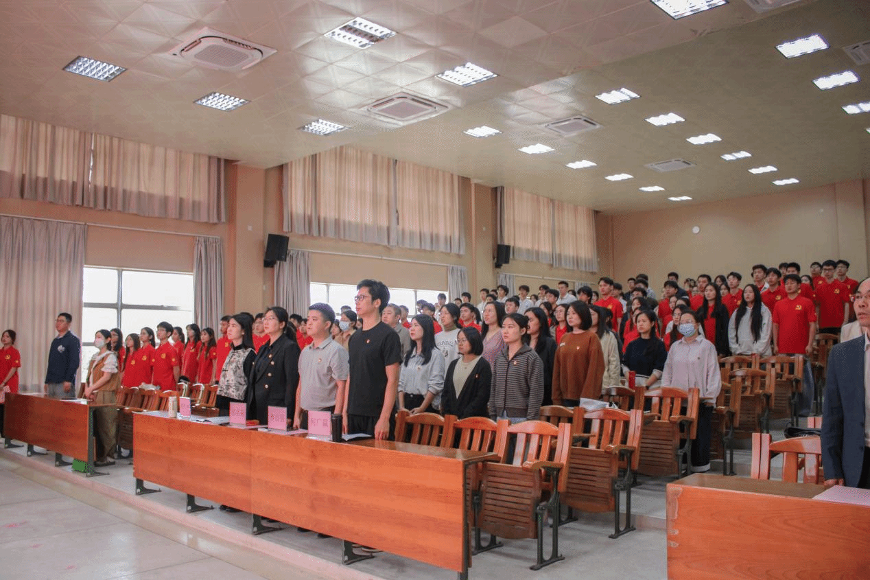 在何广赢老师的带领下,全体党员面向党旗庄严重温入党誓词,誓言铿锵,信念坚定。会上还进行了诗歌朗诵《盛世中国》,深情激昂的演绎展现出新时代气象,进一步激发了全体党员投身应用型高等教育、助力学院特色发展的热情与动力。大会在雄壮的《国际歌》声中圆满落幕。