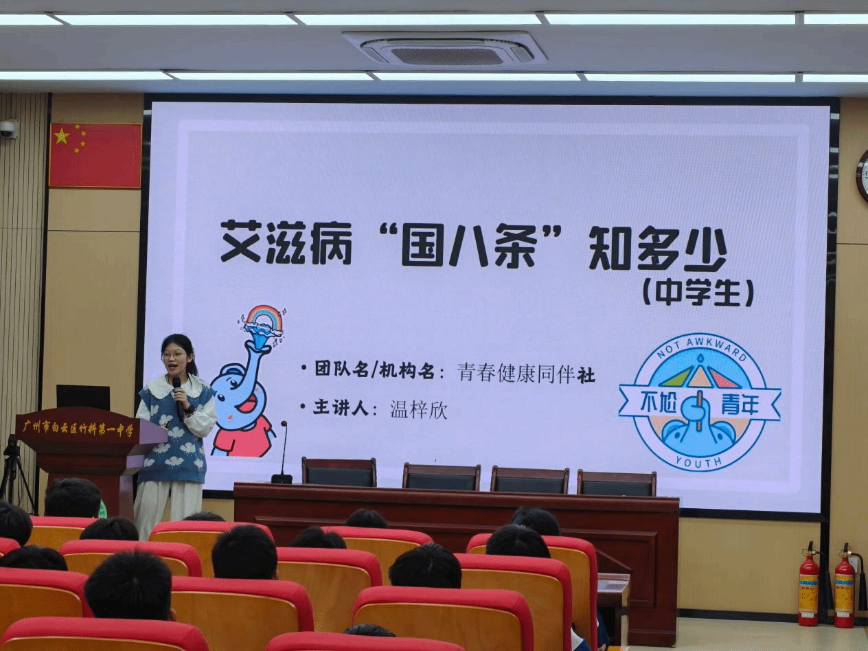 为积极响应号召,推动艾滋病防治知识在青少年中的普及,12月10日,心理健康教育与咨询中心组织并带领青春健康同伴社骨干成员,前往竹料第一中学开展“艾滋病‘国八条’知多少”主题讲座。本次活动由心理中心统筹指导,青春健康同伴社成员具体实施,是“大手拉小手”防艾宣传系列活动的重要一站,旨在通过高校学生社团的同伴教育力量,帮助初中学生树立正确的防艾观念,增强自我保护意识。