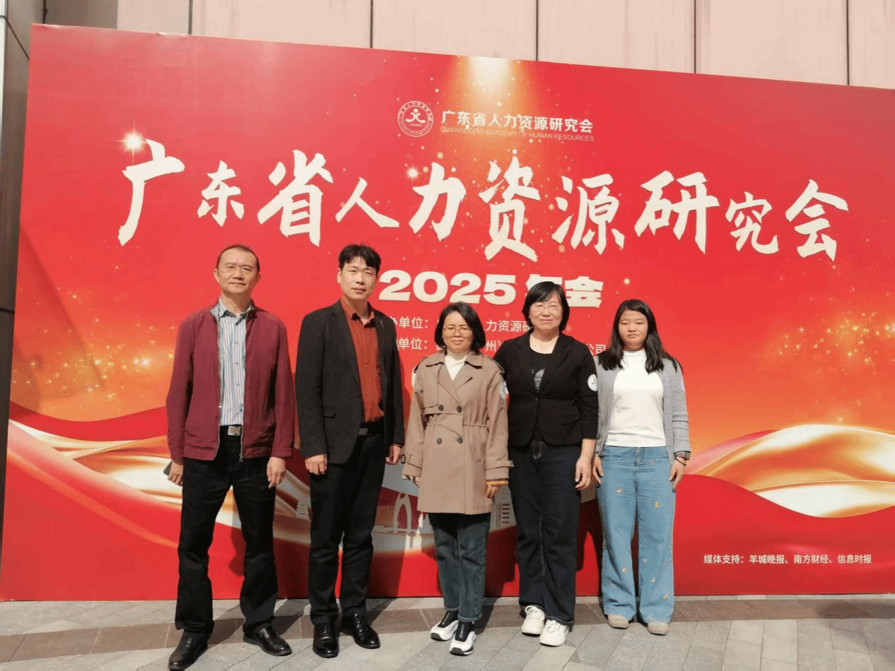 12月6日,2025年广东省人力资源研究会年会暨数智人力赋能粤港澳大湾区AI时代竞争力研讨会在广州(国际)科技成果转化天河基地召开。会议聚焦“数智人力赋能粤港澳大湾区AI时代竞争力”这一主题,深入探讨在人工智能快速发展的背景下,人力资源管理的数字化转型路径及其对大湾区高质量发展的支撑作用。我校李红英副校长、段立校长助理、工商管理学院人力资源管理系专业负责人殷明、系副主任李振书、教师潘堃婷参加会议。
