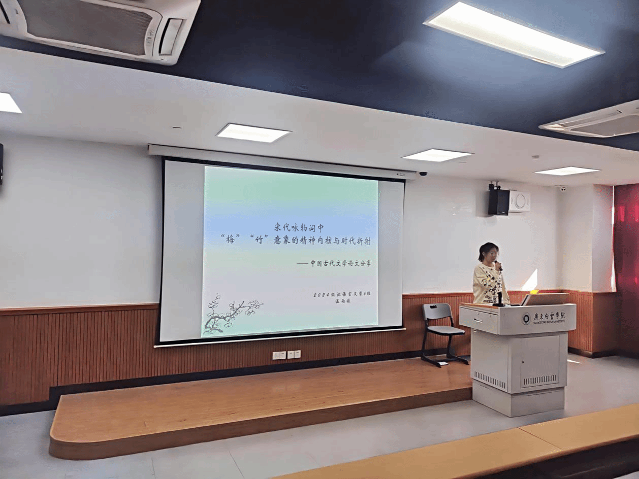 24级汉语言文学6班温雨姝《宋代咏物词中“梅”“竹”意象的精神内核与时代折射》以宋代咏物词中的“梅”“竹”意象为研究对象,探讨其从“道德符号”向“境遇镜像”的转型。通过分析苏轼、陆游、林逋、姜夔、柳永、朱淑真等不同境遇文人的书写差异,指出梅竹意象不仅是高尚品格的象征,更是文人个人情感与时代语境的反映。文章从政治生态、文化思潮、审美转向等角度,阐释了梅竹意象多元内涵的时代根源,提出了“境遇—意象—时代”的互动解读路径,丰富了宋词意象研究的维度。(图文/教育学院 谭惠敏 责任编辑曾进)