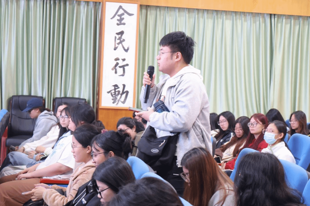花都禁毒项目主任王洁屏随后向师生系统分享了花都区禁毒项目的运作模式、服务体系及职业发展路径等内容。在梁良老师引导下,同学们踊跃提问,提出“同伴教育者的角色功能”“服务成效未达预期时的应对策略”等实务难题,王主任结合一线经验逐一解答,让大家对基层社工的工作挑战与职业坚守有了更真切的体会。