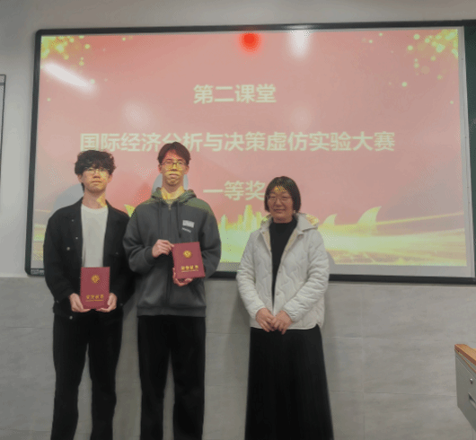 2025年12月25日,在明德楼402室举行第二课堂之国际经济分析与决策虚仿实验大赛颁奖典礼,本次活动圆满结束。