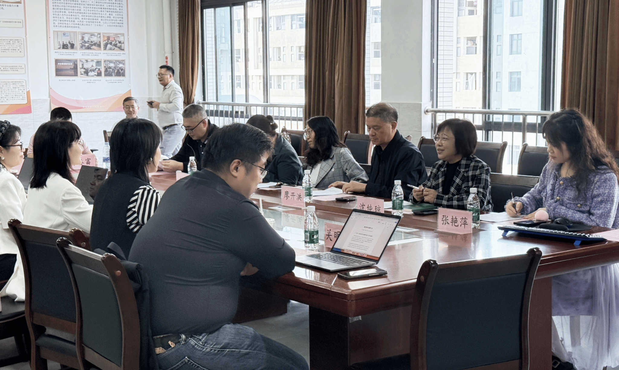 随后,沈纯琼副院长汇报了我校实习推荐工作成效及创新创业比赛获奖情况;广东八灵科技发展有限公司结合行业趋势,分享了企业人才需求标准与校企联合项目落地思路。与会人员围绕校企合作人才培养模式创新、创新创业赛事组织与成果转化、实习基地建设与优化等议题展开深入研讨。交流环节中,大家积极建言,现场气氛热烈。