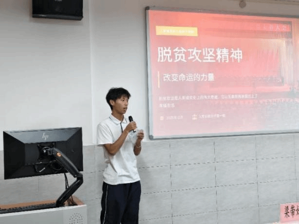 接着,肖丹妮、李洁、洪学智等同学依次登台对“改革开放精神”“青藏铁路精神”“脱贫攻坚精神”等从精神内涵、时代背景、核心人物故事等展开全面细致的介绍。他们结合自身感悟,配合精心制作的PPT,使改革开放精神、青藏铁路精神、新时代北斗精神等精神谱系愈发立体鲜活,有效推动了精神谱系入脑入心,凝聚起青年一代勇担使命、砥砺奋进的磅礴力量。