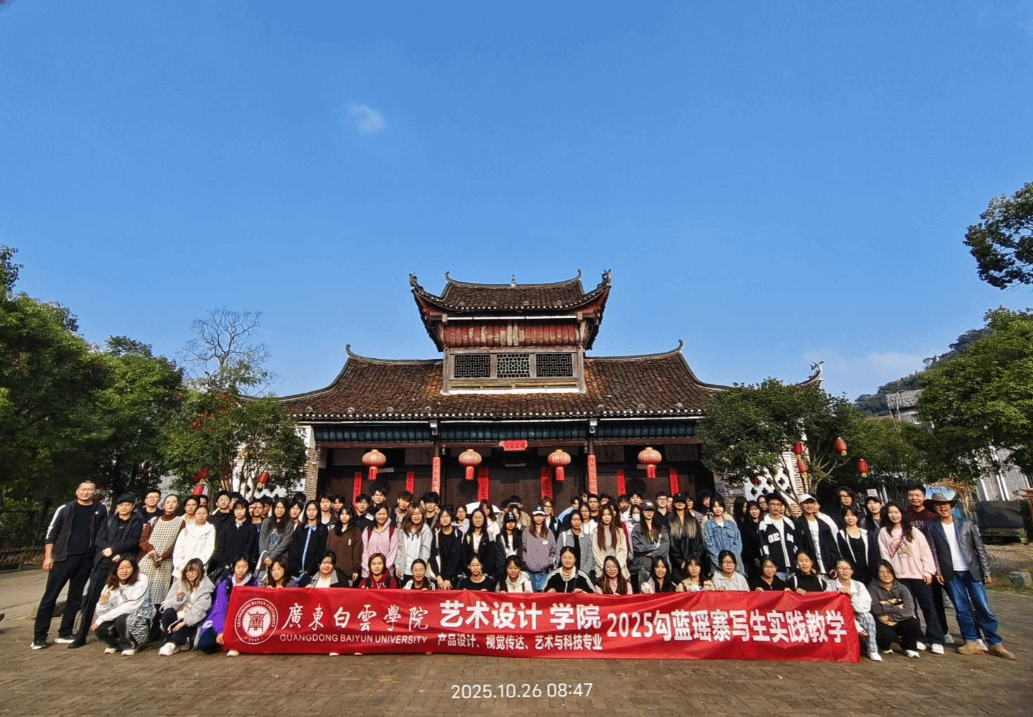 2025 年秋冬之交,广东白云学院艺术设计学院与传媒学院师生怀揣这一思考,分三批次奔赴湖南省永州市江永县勾蓝瑶寨,开展了为期二十余天的《素描 / 色彩写生》校外实践教学活动。这场实践不仅是一次专业技能的集中锤炼,更是一场深入民族文化腹地的探索之旅,其丰硕成果悉数汇聚于 “丹青写瑶寨,数智绘新韵” 优秀作品展。