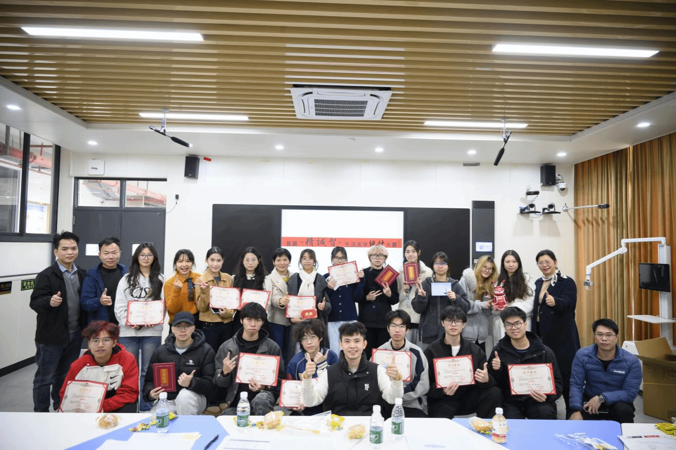 经过紧张有序的综合评审,大赛最终评选出先锋设计奖 1 名、美学突破奖 2 名、新锐潜力奖 3 名、优秀应用奖 2 名及创意萌芽奖 12 名。颁奖环节中,校企代表共同为获奖同学颁发了荣誉证书、奖金及定制礼品。其中,斩获先锋设计奖与美学突破奖的同学,更成功获得精诚智科技的实习机会,被纳入企业未来人才储备库,实现了从校园创意到职场机遇的无缝衔接。