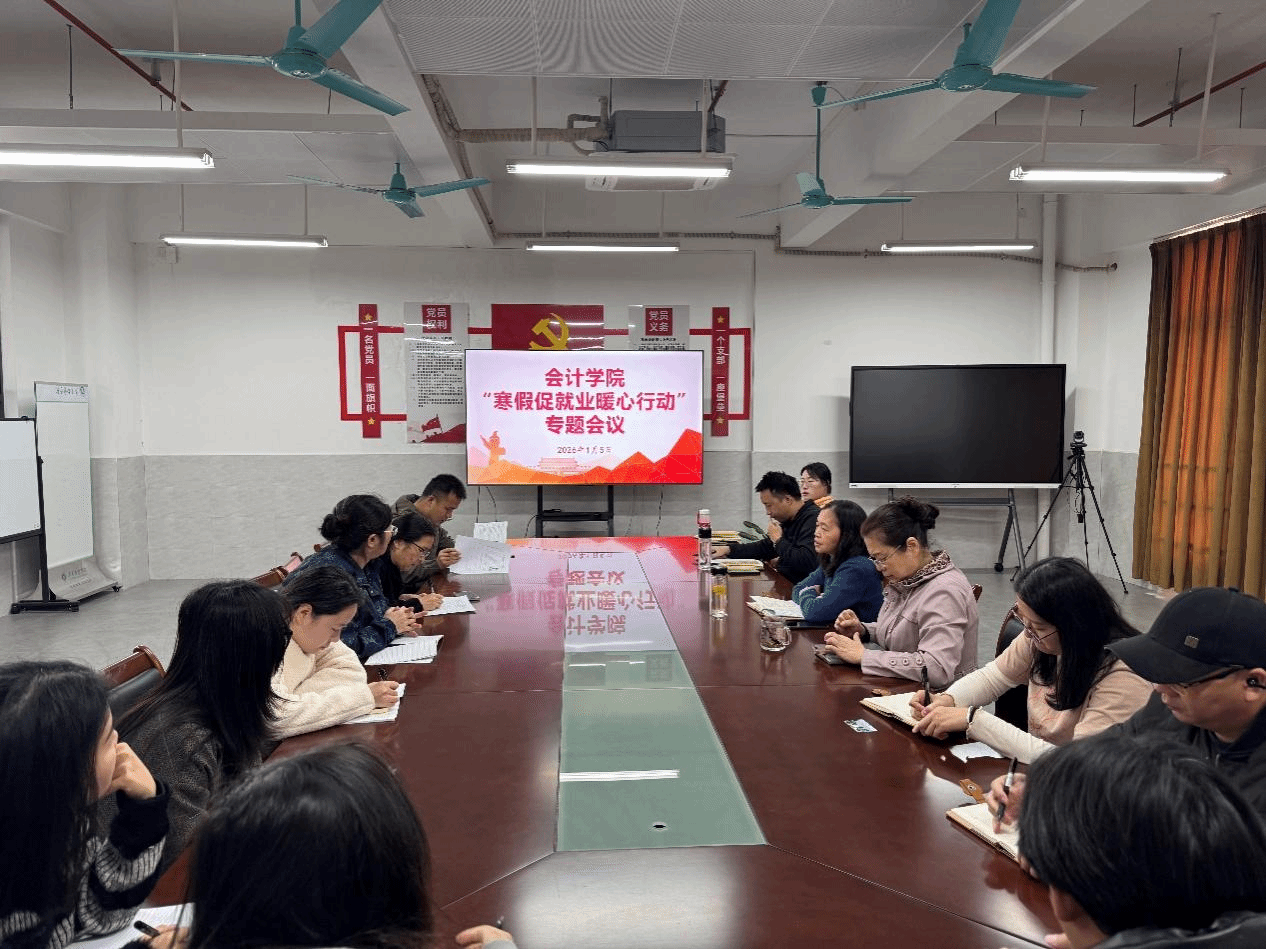 为深入贯彻党中央、国务院关于高校毕业生就业工作决策部署,落实2026届全国高校毕业生就业创业工作会议精神和学校《关于开展2026届毕业生“寒假促就业暖心行动”的通知》精神,充分把握寒假就业黄金窗口期,推进就业岗位扩容提质,让就业服务可感可及,近日,会计学院召开2026届毕业生“寒假促就业 暖心行动”专题会议。学院党委书记李建华主持会议,全体辅导员参会。