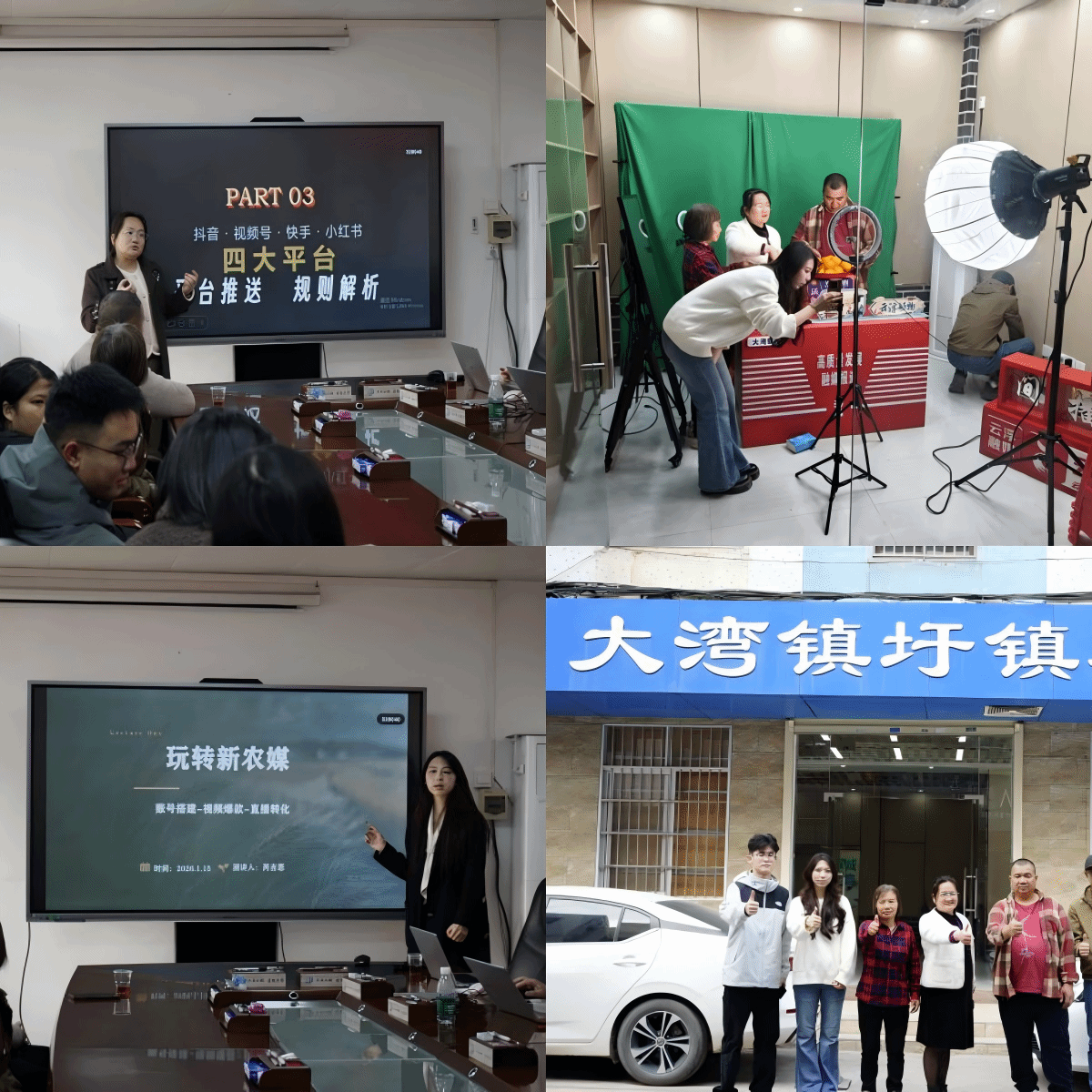为深入贯彻落实广东省“百千万工程”部署,助力乡村产业振兴,本月14-18日,姚雪梅副教授(省农村科技特派员、创新创业学院基地导师)带领学生“星农人创客团队”芮吉恩、梁正前往大湾镇开展“新媒体技能赋能”专题培训。来自各村(社区)的30余名青年家庭农场经营者、返乡创业青年等齐聚一堂,以学赋能、以练促干,共同探索新媒体助力农产品上行新路径。