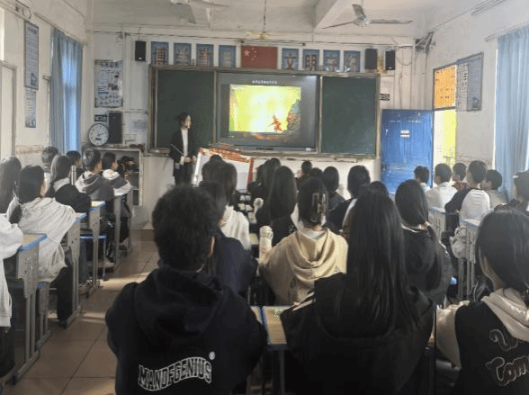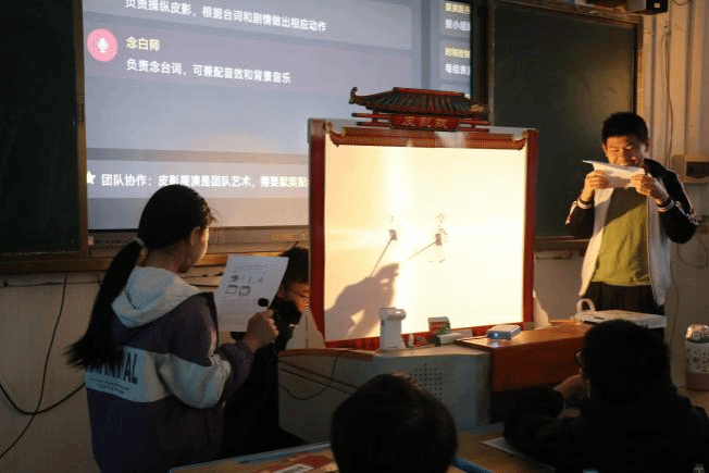 中文系学生在南塘中学开展了以“ 陆丰皮影 ”为主题的课堂实践教学 。同学们结合前期调研与创意策划,向中学生介绍了皮影戏的历史渊源、艺术特色与文化价值,并指导学生动手制作皮影角色、体验表演片段。课堂气氛活跃, 学生在实践中切身感受到本土非遗的魅力,实现了“大学—中学 ”联动 、“理论—实践 ”结合的教学创新。