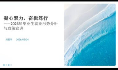 3月4日,艺术设计学院以“线上+线下”相结合的形式,面向2026届毕业生开展“就业第一课”系列活动。活动由学院党委副书记刘云华主讲,涵盖辅导员就业工作部署与毕业生就业指导课程,旨在引导师生认清就业形势、明确工作路径、提升求职竞争力,为新学年新学期就业工作拉开序幕。全体辅导员及部分毕业生代表共同参与。