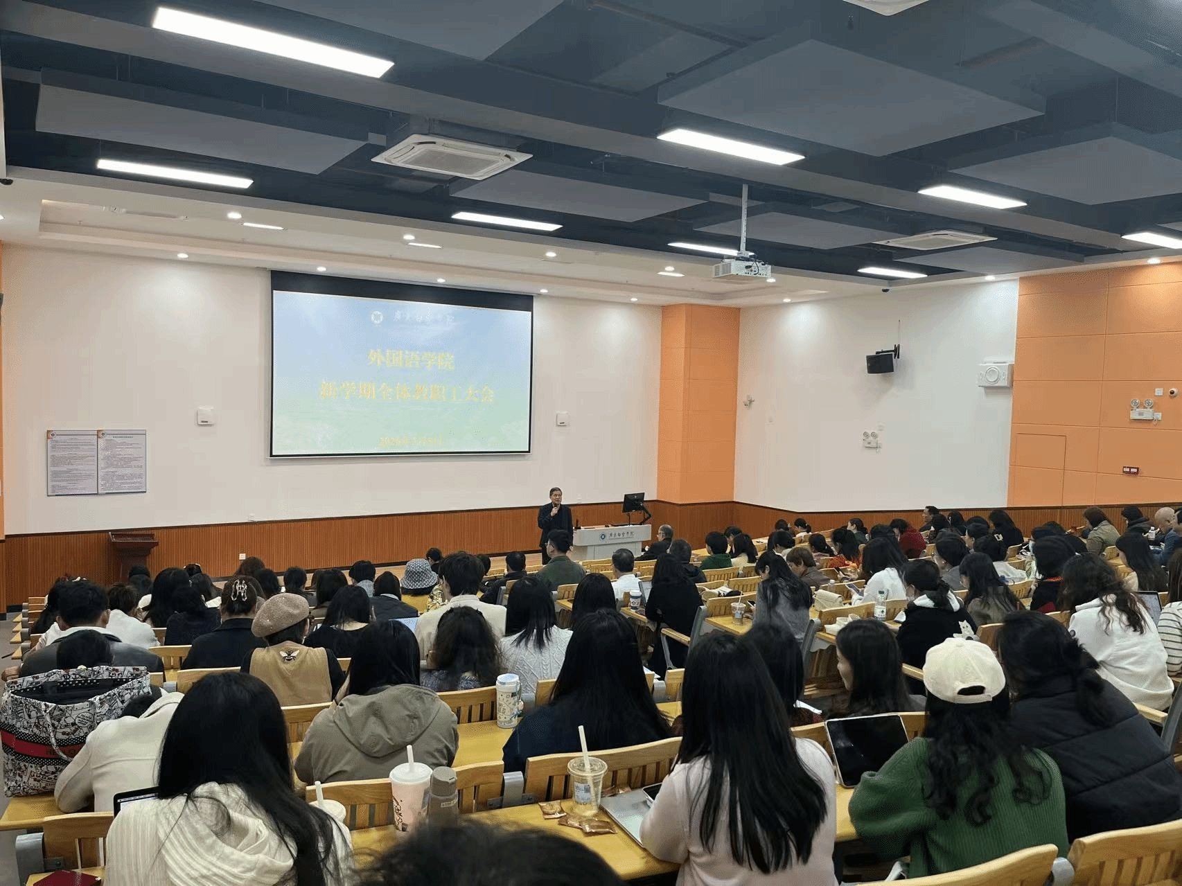 3月 5 日下午,外国语学院在励学楼 405 室召开新学期全体教职工大会,全面部署新学期各项工作。会议由院长廖开洪主持,学院领导班子成员及全体教职工参会。