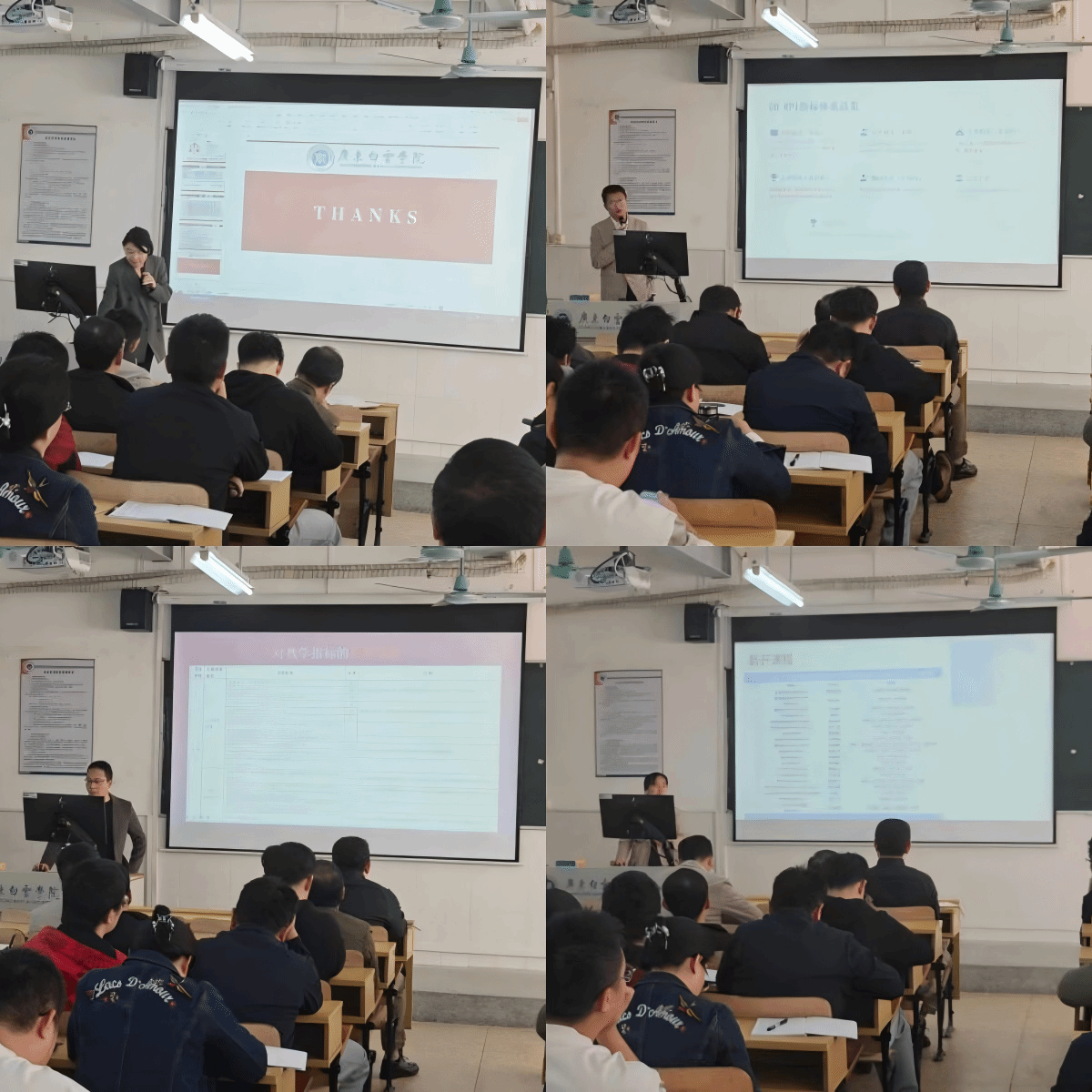 紧接着,自动化系主任苏康友、电子工程系主任方烨、电气工程系主任崔晓、理化教研室主任杨晶分别结合学校KPI指标体系,结合各系专业和师资队伍实际情况,在科研转化、课程建设、竞赛备赛等方面明确各系部本年度核心工作任务。苏康友主任提出“以老带新”的团队策略,动员年轻教师积极参加教学竞赛和指导学生竞赛。他特别提到,指导学生竞赛不仅是KPI要求,更是年轻教师积累工程经验、提升教学能力的必经之路。苏主任鼓励年轻教师走出宿舍、走进实验室,与学生共同成长。方烨主任提出教师要有“两手准备”:一方面积极申报一流课程、质量工程等重点项目;另一方面要做好备选方案,如将课程建设经验转化为教改论文,确保过程有积累、结果有产出。他鼓励年轻教师不要畏惧比赛,要通过参与积累经验,从“被动应付”转变为“主动出击”。崔晓主任展示了2025版人才培养课程体系,详细列出了19门新设课程及16个教学团队的组建情况,确保新课程建设责任到人。杨晶主任提出了“依托省级教研教改项目、教学资源建设、教师教学竞赛及教科研项目孵化”的工作思路。