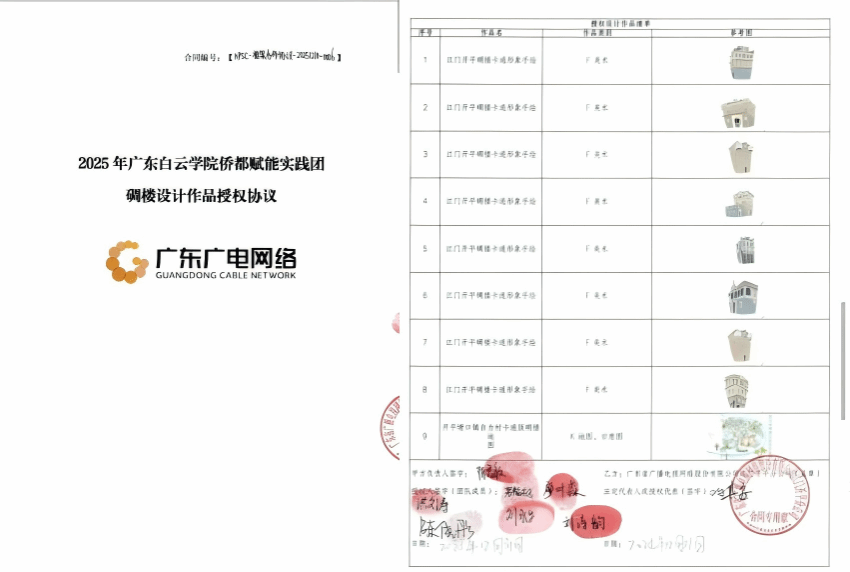 紧扣实践目标,团队始终坚持调研与实践深度融合、成果与落地同步推进,切实把实地调研所得转化为推动塘口镇文旅发展的实际成效。团队立足塘口侨乡文化底蕴与资源特色,精心打造塘口镇专属文化IP,着力树立辨识度高、感染力强的地域文旅新标识,让本土文化基因转化为可感知、可传播、可体验的文旅品牌符号;积极搭建校地合作桥梁,主动对接优质社会资源,成功与广东广电网络达成深度合作并完成签约,进一步打通高校智力资源、地方发展需求与企业平台优势,开启校地协同、资源共享、互利共赢的新篇章;