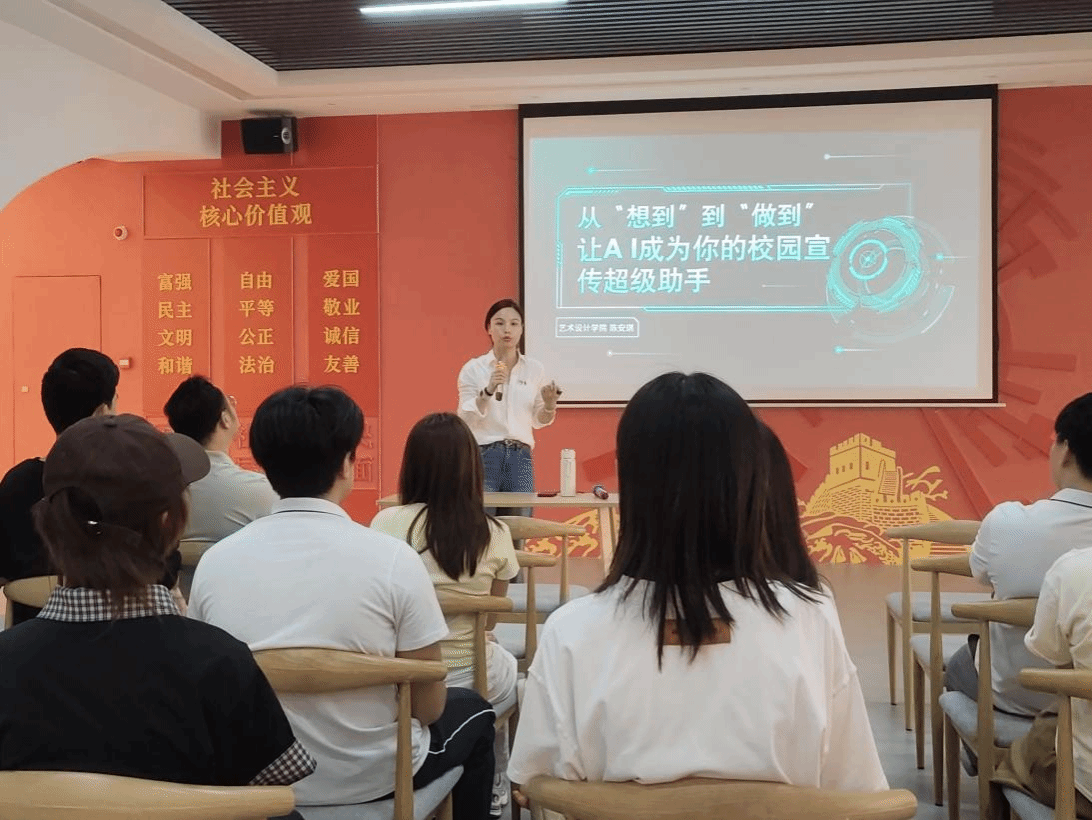 3月19日下午,艺术设计学院陈安琪副教授在白云楼三楼党建基地为学校宣传部干事及飞云传媒学生社团带来了一场题为《从“想到”到“做到”—— 让AI成为你的校园宣传超级助手》的精彩讲座。