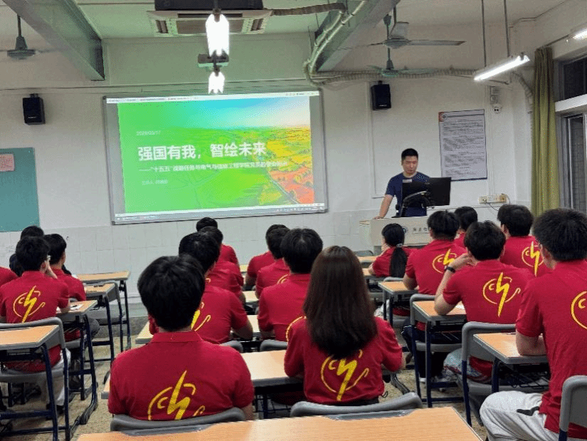 为引导支部党员深刻把握国家 “十五五” 战略核心要义,明晰新时代工科青年党员的使命与担当,2026年3月17日,电气与信息工程学院第一学生党支部在至善楼 301召开 “强国有我,智绘未来 ——‘十五五’战略任务与电气学院党员的使命担当” 专题党课学习会。会议由支部书记林晓盛主持,支部全体党员参加本次学习,共同筑牢思想根基,凝聚奋进力量。