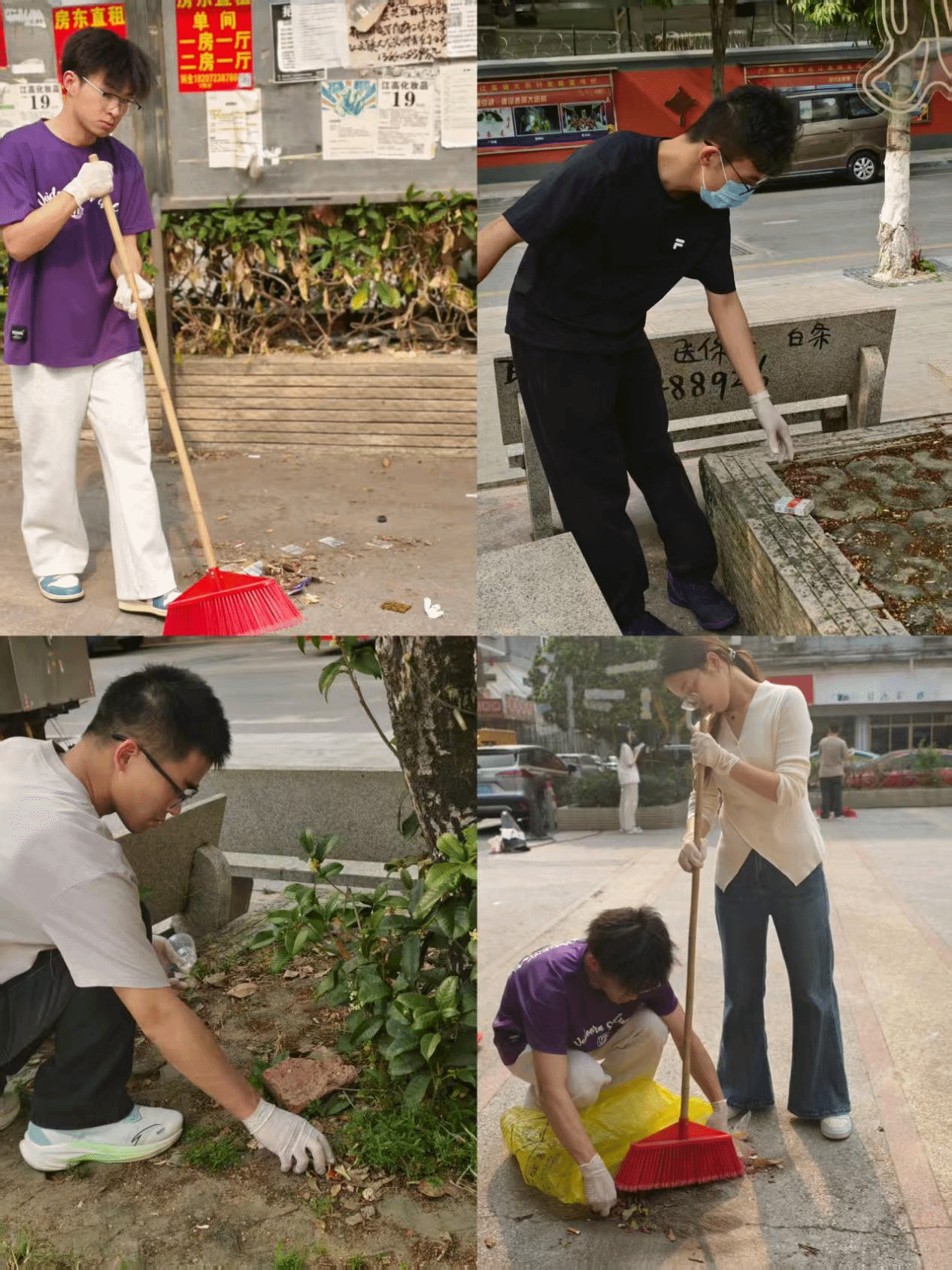 志愿者们统一穿上志愿服,带着扫帚、垃圾夹、垃圾袋、抹布等清洁工具,有序抵达大田村,在当地村干部的统筹安排下,快速分组分工、划定清理区域,全身心投入到人居环境整治工作中。