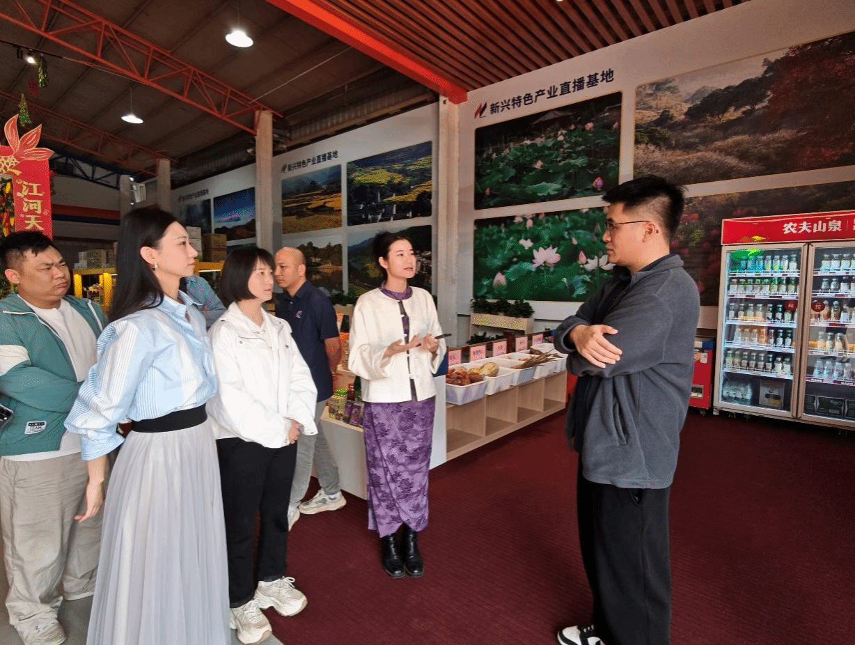 新兴特色产业直播基地负责人为农村科技特派员师生团队介绍基地情况