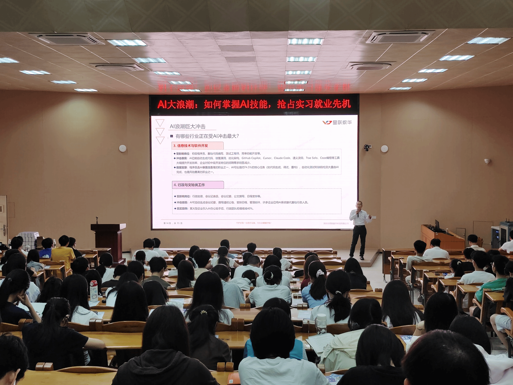此次讲座是大数据学院深化产教融合、布局 AI 人才培养的重要举措,学院始终紧跟学校 AI 教育发展布局,依托校企合作资源与企业导师优势,继续紧扣学校 AI 教育研究方向,深化产教融合、强化实践教学,不断优化专业课程体系,把 AI 前沿技术与行业实际需求深度融入教学环节,全力培养兼具专业功底与 AI 应用能力的高素质应用型人才,助力学校 AI 教育研究工作走深走实,也为学子抢抓 AI 时代就业机遇、实现高质量就业筑牢根基。(图文/大数据与计算机学院胡俊涛 责任编辑曾进)