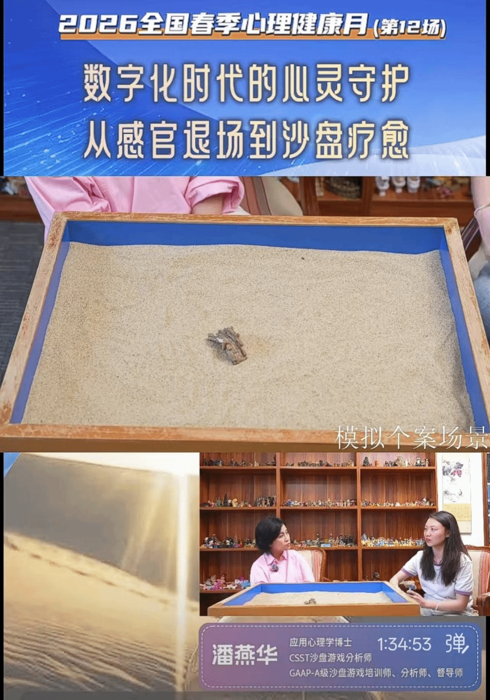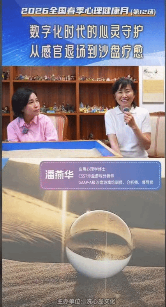 直播活动由东方心理分析研究院发起,聚焦“数字化时代的心灵守护”这一具有鲜明时代性的命题。活动特邀心理学博士、CSST沙盘游戏分析师、GAAP-A级游戏培训师、分析师督导师、中国心理学会注册系统心理师潘燕华老师,与广东白云学院应用心理系的师生共同参与。通过线上线下相结合的创新形式,活动旨在探索沙盘疗愈等专业方法在“感官退场”现象日益普遍的当下所具有的独特价值,同时为高校展示其心理专业的建设成效与人才培养质量提供了宝贵窗口。
