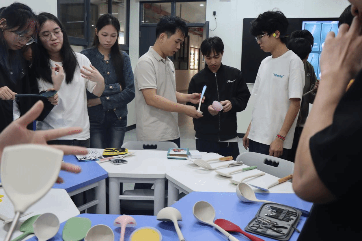 为让师生更直观了解行业前沿动态,同步开展了专题报告环节。产品设计系师生代表,认真听取了精诚智科技邱锦炫经理带来的专题分享。邱经理围绕硅胶家居用品、美容套件的产品设计,结合企业实战经验,深入解析了行业市场现状、消费趋势、设计要点及研发方向,从材质选型、功能优化到外观创意进行细致拆解,为师生搭建了理论与实践对接的桥梁。报告结束后,师生们积极与邱锦炫经理互动交流,围绕产品设计细节、行业就业机遇、创新设计思路等话题展开深入探讨,现场氛围热烈,师生们均表示收获颇丰。