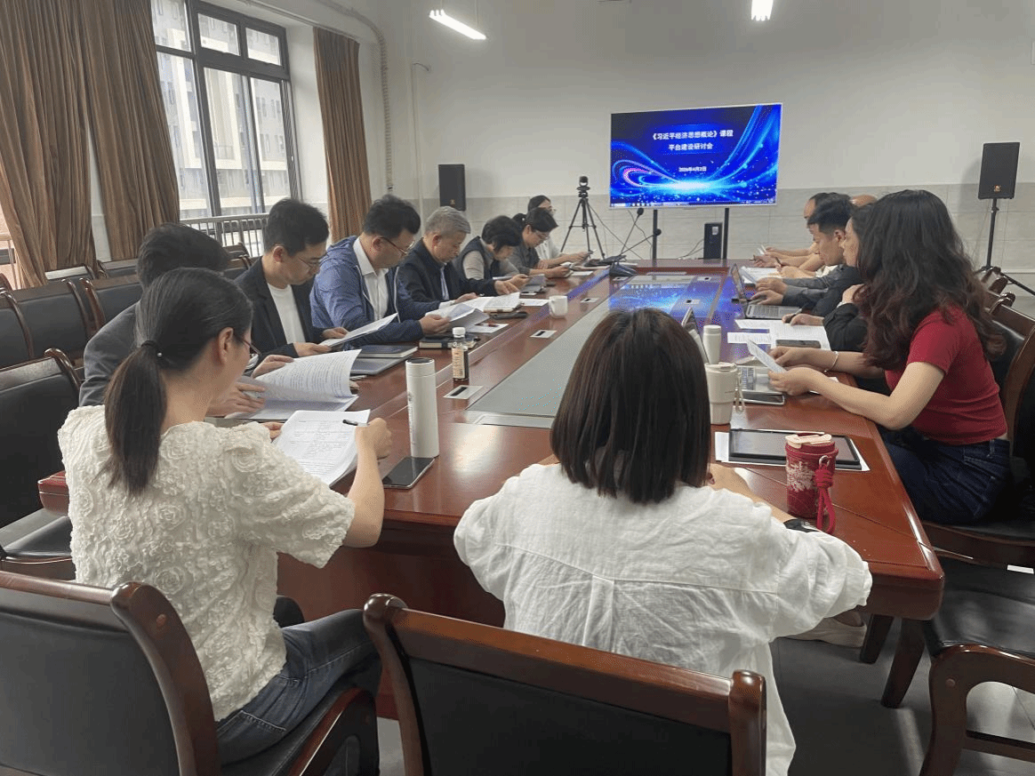 为贯彻落实党的二十大和二十届历次全会精神,贯彻落实全国教育大会精神,推进习近平经济思想有机融入专业教育,提升经济学人才自主培养质量,4月2日,应用经济学院在敦品楼710会议室组织召开《习近平经济思想概论》课程平台建设研讨会。应用经济学院院长陈喜强,学院党委书记张泽彬,副院长董思雁、姜剑涛,工商管理学院副院长招建贞,会计学院副院长周谦,马克思主义学院黄军博士,以及应用经济学院系正副主任、课程建设团队成员参会。