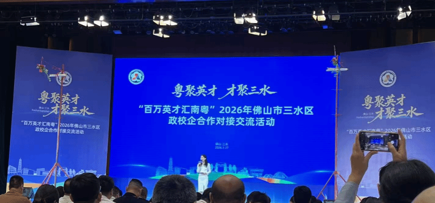 3月26日至28日,“粤聚英才 才聚三水”——“百万英才汇南粤”2026年佛山市三水区政校企合作对接交流活动在三水举行。本次活动由佛山市三水区人力资源和社会保障局主办,武汉大学、中山大学、天津大学、中南大学、吉林大学、华南理工大学等52所国内知名高校的代表,健力宝、粤海信、盛路通信、兴发铝业、邦普循环、箭牌家居等101家三水重点企业负责人齐聚三水,就业指导中心和产教融合中心老师赴现场参与,并集中走访西南水都饮料食品基地、健力宝、兴发铝业、粤海信与葆德科技,参加高校毕业生专场招聘会与政校企合作专题座谈。
