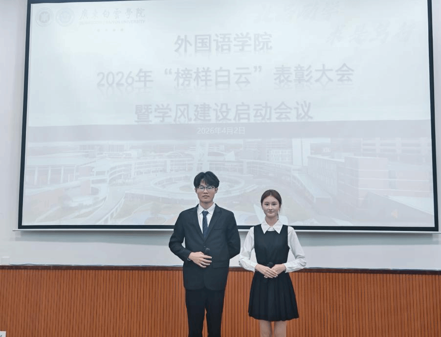 4月2日下午,外国语学院2026年“榜样白云”表彰大会暨学风建设启动会议在励学楼205教室举行。本次会议旨在充分发挥榜样示范引领作用,培育优良学风,扎实推进学院学风建设走深走实。学院党委书记贺满云、全体辅导员及学生代表共同参会。