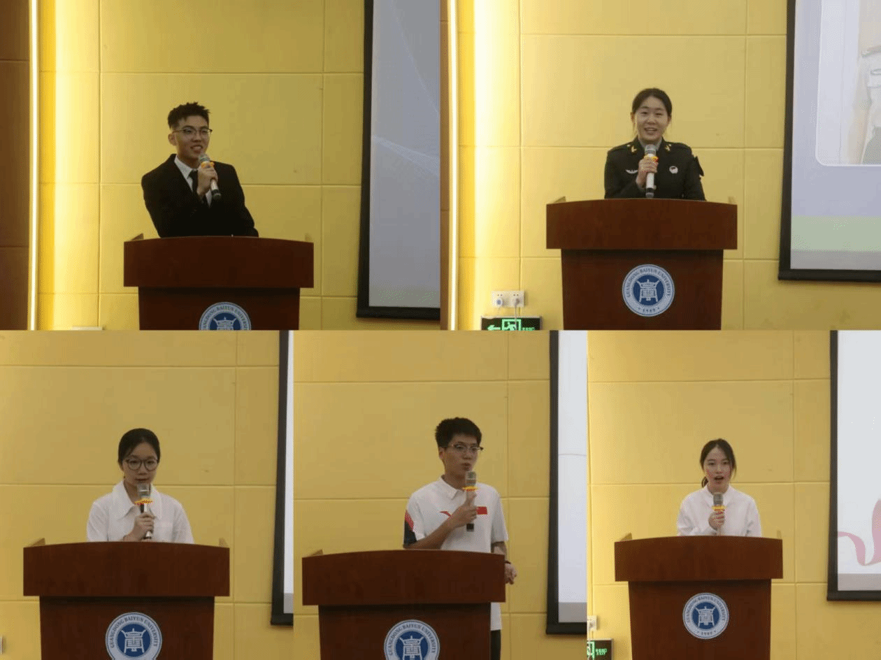 随后,五位不同领域的优秀学生代表依次上台分享感悟、传递力量。先进班级集体代表罗绮雯分享班级凝心聚力、共建优良班风的经验;运动健康学生代表朱建东讲述以强健体魄赋能学业、实现全面发展的历程;社会实践学生代表陈慧荧交流在实践中增长才干、服务社会的心得;国家奖学金代表谢中兴分享深耕学业、追求卓越的奋斗经历;退役学生代表詹凌润结合军旅生涯,诠释自律自强、使命在肩的品格。他们的发言真挚感人、催人奋进,为学院学生树立了可学可鉴的榜样。分享结束后,教师代表宣读了倡议,学生代表作了响应。