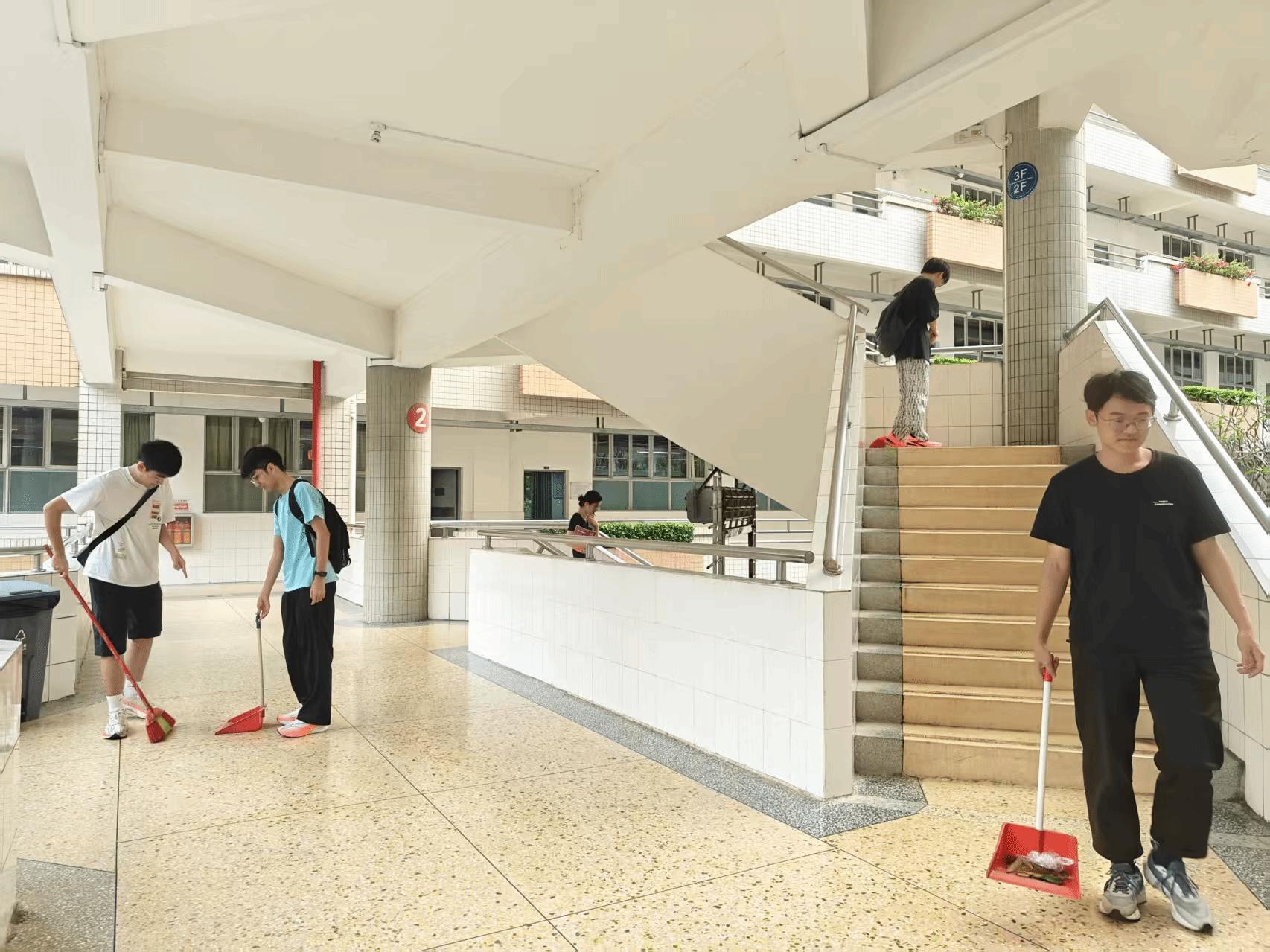 活动当天,智能制造工程学院的学生干部及志愿者代表们热情高涨、分工有序。大家手持扫帚、簸箕、抹布、垃圾夹等工具,迅速投入到至善楼各个楼层的清洁工作中。志愿者们分组协作,有的清扫楼道地面,有的捡拾角落物品,有的擦拭楼梯扶手,有的清理门窗积尘。整个劳动过程秩序井然,大家不怕脏、不怕累,不放过任何一处卫生死角,现场洋溢着团结协作、积极向上的劳动氛围。