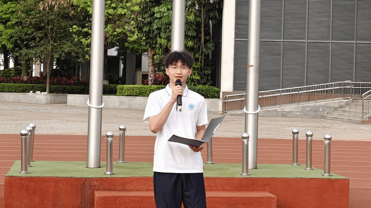 学生代表王冠意、袁文杰在国旗下演讲