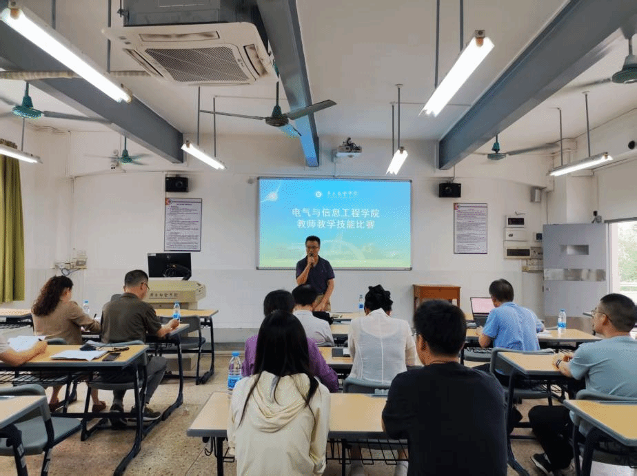 为提升学院教师教学能力水平,夯实教学基本功,培育参加各类教学竞赛能手,2026年4月14日下午,电气与信息工程学院2026年教师教学技能竞赛首场比赛拉开了序幕。
