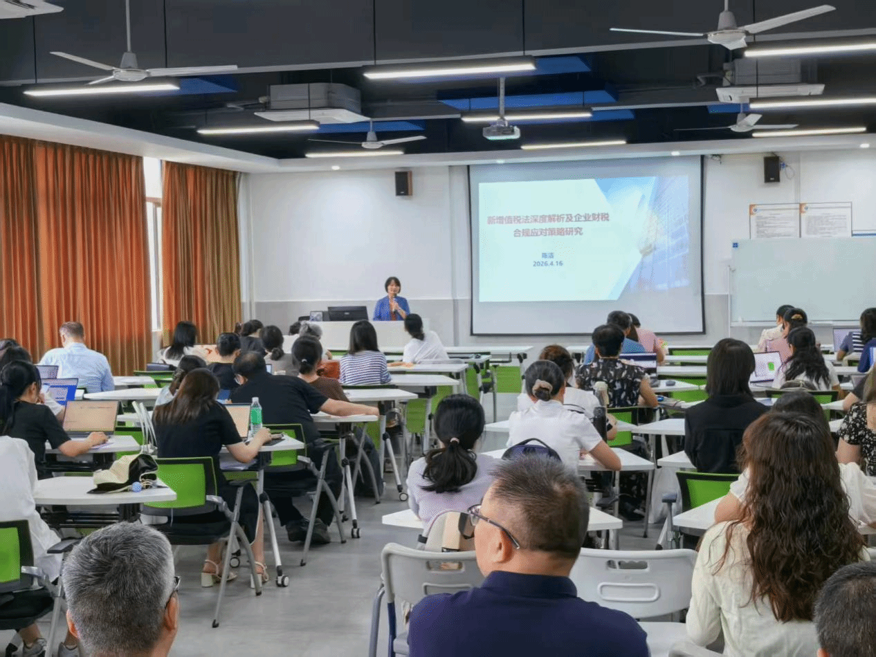 4月16日下午,会计学院在北校区致用楼804开展了主题为《新增值税法深度解析及企业财税合规应对策略》的学术讲座。本次讲座由会计学院陈洁教授主讲。会计学院全体教师参加讲座。
