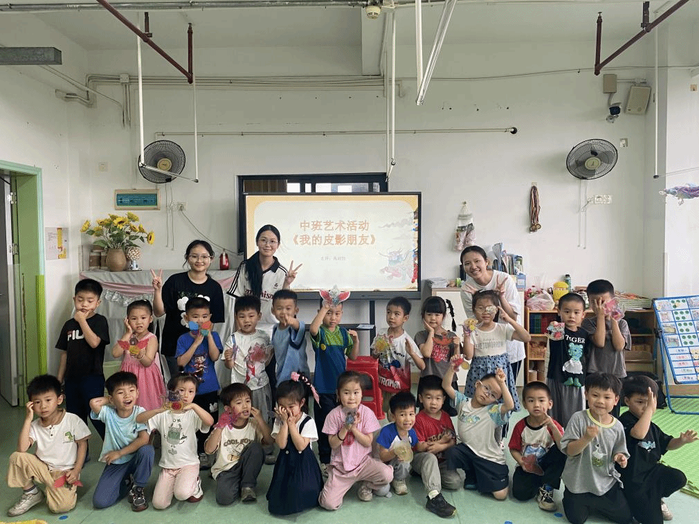 所有环节完成后,孩子们手持自己亲手制作的皮影人物,与团队师生、幼儿园教师一同合影留念,定格下此次非遗实践的美好瞬间。