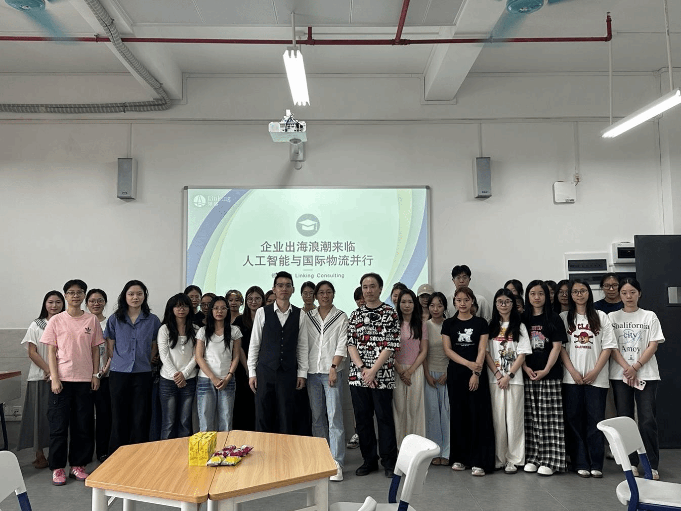 王宏彦先生紧扣企业出海核心趋势,深度拆解人工智能与国际物流的融合发展,为在场学子带来前沿行业洞察。 活动中,同学们专注聆听、踊跃互动,展现了对未来物流行业的浓厚兴趣与思考。