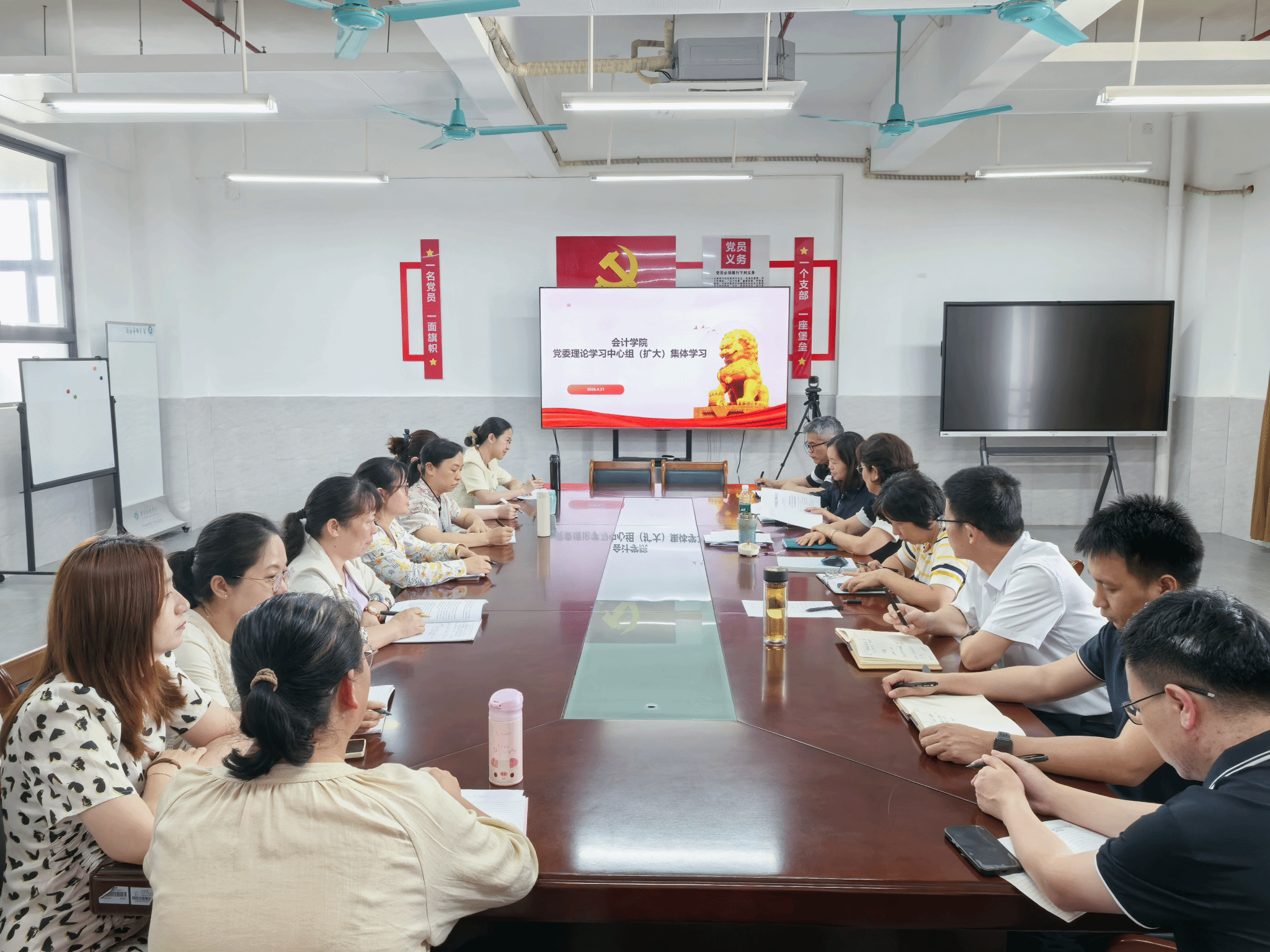 会计学院党委于2026年4月21日下午在致用楼1315会议室召开党委理论学习中心组专题党课学习,会议围绕“以正确政绩观引领财经秩序”这一主题开展。学院党委理论学习中心组成员、各系主任、办公室主任、各党支部书记参加会议。会议由学院党委书记李建华主持。