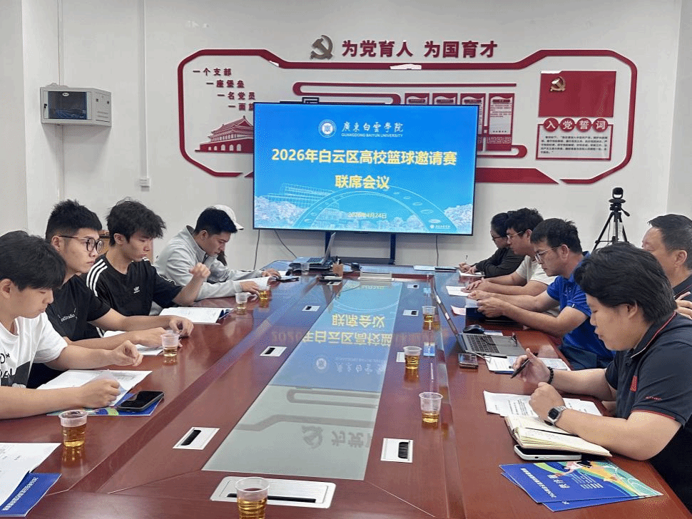 为保障 2026 年白云区高校篮球邀请赛安全有序、公平公正开展,2026 年 4 月 24 日,赛事领队、教练员联席会议在广东白云学院北校区体育馆 404 会议室顺利召开。赛事组委会相关领导、裁判长、各参赛高校代表队领队、教练员及赛事工作专班全体成员参加本次会议。
