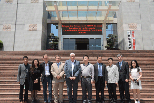 广州市白云工商技师学院校长李孟强(右五)、广东白云学院副校长沈根生(右四)、校长助理肖军田(右三)、等和Roger Sengel总裁(左五)一行合影