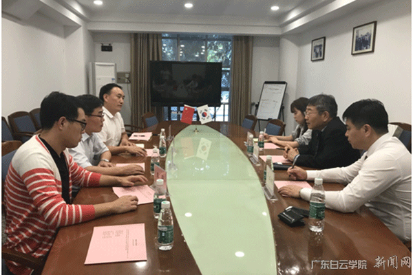 随后,双方围绕学生、教师的相互交流和共建“中韩同传实验室”展开讨论。在学生交流方面,郑秀镇处长表示,希望白云学院非韩语专业的学生能参与到合作项目中来,条件是只要达到韩语的二级水平即可申请圆光大学的专业课程。圆光大学同样鼓励学生自主创业,学校会给予资金资助,同时,由于学校合作的韩国企业达到四百多家,因此赴韩留学的毕业生,也将拥有各种工作机会;在教师交流方面,圆光大学将提供给合作院校教师学习深造机会,圆光大学有74个博士点,白云学院在职教师如有学历提升计划,圆光大学可提供减免50%学费的优惠政策。关于共建“中韩同传实验室”方面,郑秀镇处长指出,2016年圆光大学启动了“海外校园”项目,拟将广东白云学院建成唯一一所能提供中韩同声翻译的“海外校区”。 他表示,待韩国教育部通过相关法案后,将着手投入相关资源,与白云学院共同建立“中韩同传实验室”,扩大招生资源,提升影响力。对此,刘毅副处长表示学校也将全力支持实验室的成立,努力打造“海外校区”的品牌。