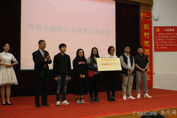 沈根生副校长(左二)颁发“广东白云学院出国留学奖学金”奖项