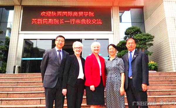 谢少华副董事长(右二)、Jessie-Harman博士(中)、Anne-Kelly女士(左二)、沈根生副校长(右一)及赵铁博士(左一)合影