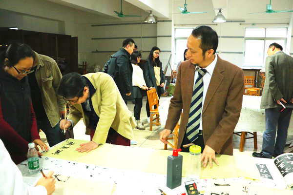 沈根生副校长陪同客人参加艺术设计学院实训场