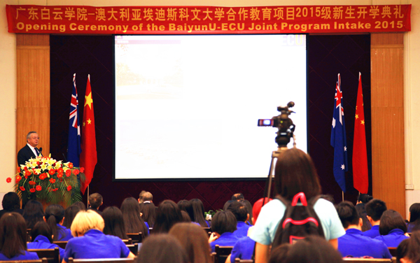 第三届BaiyunU-ECU中澳合作项目2015级新生开学典礼现场