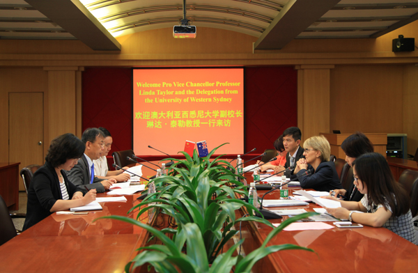 琳达·泰勒教授表示, 鉴于广东白云学院在应用技术大学建设方面的成就,以及与澳大利亚相关大学合作有着良好的声誉,她首次访问广东时就第一站选择了广东白云学院。沈根生副校长向琳达·泰勒教授介绍了我校教育国际化的理念和设想并明确表示教育质量是国际合作成功的关键因素。泰勒教授特别对双方在两校教育国际化理念高度一致基础上所表示的合作诚意连连称赞。黄大乾校长表示,相信我校与西悉尼大学的合作一定会丰富两校师生间教和学的经历,推动两校的教学发展和提升。在短短的2个小时内,双方就在多项课程学分互认、教师交流和学生交流等方面的合作进行了富有成效的会谈,初步达成合作意向。泰勒教授对外国语学院就合作事宜做了充分的前期准备,使得双方会谈进行的十分顺利,表示感谢。会谈后,泰勒教授及其一行参观了外国语学院的翻译专业多媒体课室、外国语学院和国际学院学生举办的外国文化博览会以及艺术设计学院的2015年度毕业生毕业设计展览(国际合作与交流处 张晓会)