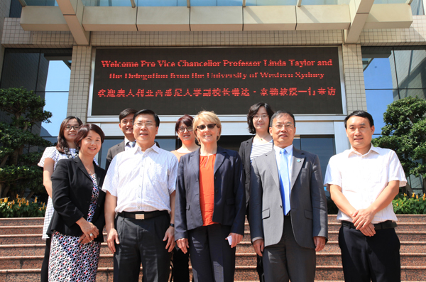10月23日,澳大利亚西悉尼大学副校长琳达·泰勒教授一行5人来广东白云学院访问,洽谈合作事宜。我校校长黄大乾教授、副校长沈根生教授热情接待了来访客人,外国语学院英语系主任刘毅先生和国际合作与交流处张晓会女士等参与了接待。参加会谈的澳方来宾有Mabel Han 女士、Athena He女士、蒋伟博士和Javier 杨先生。