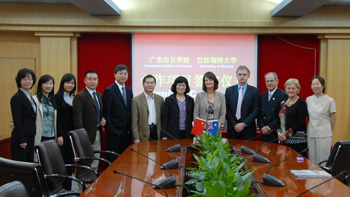 3月16日,广东白云学院与澳大利亚国立巴拉瑞特大学合作项目签订仪式在国际会议厅举行。副院长梁炳钊代表学院与巴拉瑞特大学常务副校长罗威那.库茨(Ms.Rowena Coutts)就合作办学达成了意向,并签订合作协议。常务副院长曾小彬、澳方院校领导迈克.威利斯(Prof.Mike Willis)、玛丽.霍利克(Dr Mary Hollick) 出席仪式。在本协议框架下,两校将开展更深层次的合作与交流,为两校师生提供更多、更优质的教育资源和发展渠道。此次协议的签署是两校合作道路上的一个里程碑,双方对未来的合作充满了期待希望。